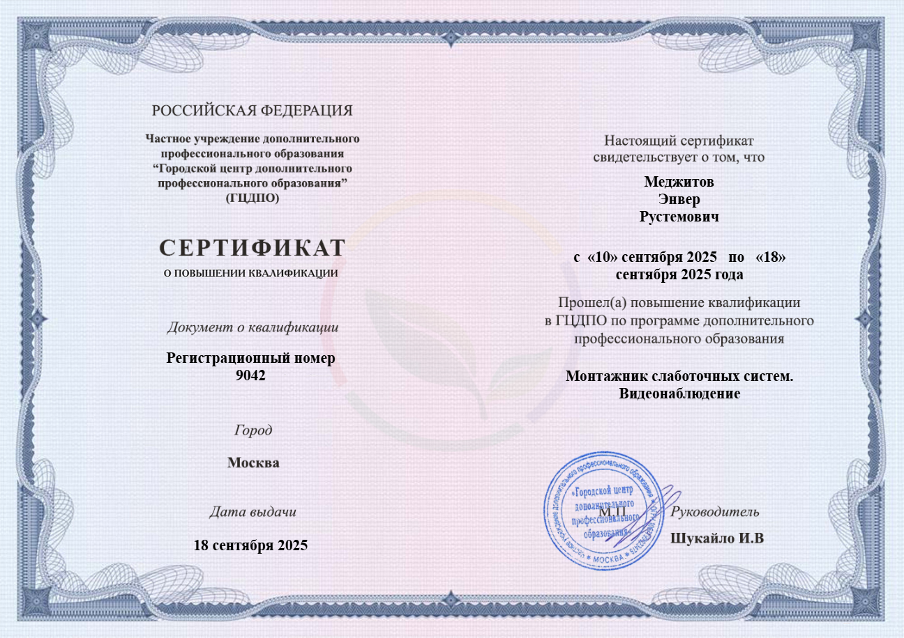 Наши инженера все с удостоверением и сертификатами, подтверждающие высокую квалификацию специалистов.